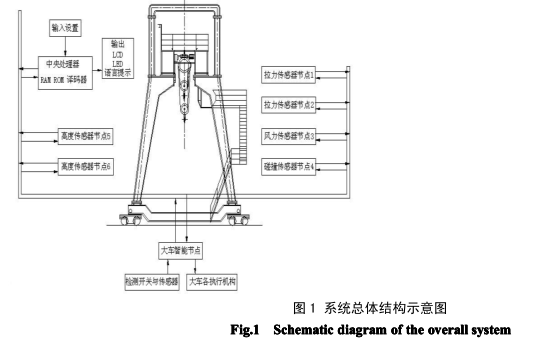 起重機(jī)用戶關(guān)心的涉及到安全方面的工況參數(shù)主要有:主鉤與副鉤的起重載荷和起升高度、大梁的 起重力矩、工作幅度、鋼絲繩狀況、風(fēng)速(力)大小、起重過程中載荷振動(dòng)情況以及大、小車的各種信 息(如輪子與軌道的接觸狀況、電動(dòng)機(jī)轉(zhuǎn)速參數(shù)、溫度)等。如何對這些工況參數(shù)進(jìn)行巡回采集、算法 處理,并實(shí)時(shí)輸出控制和提示是本系統(tǒng)設(shè)計(jì)的關(guān)鍵所在。