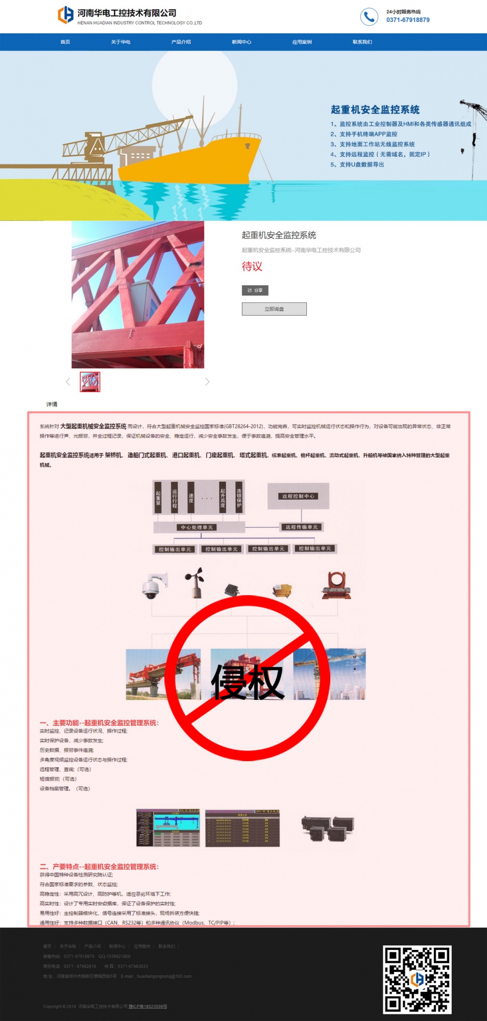 近期發(fā)現(xiàn),市場上有企業(yè)網(wǎng)站惡意盜用愷德爾的產(chǎn)品及技術(shù)資料,同時(shí)盜用相關(guān)案例圖片,經(jīng)查證,此公司名“河南華電工控技術(shù)有限公司”,域名地址“www.hnhdgk.cn”。這種惡劣行徑嚴(yán)重侵犯了愷德爾著作權(quán)及相關(guān)技術(shù)資料所有權(quán),并對(duì)愷德爾商譽(yù)造成了嚴(yán)重的負(fù)面影響,給愷德爾造成了無法估量的損失。在此,愷德爾鄭重聲明!